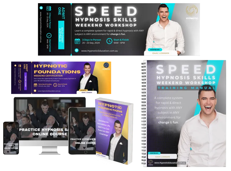 We use a proven method to have students able to build their skills in rapidly hypnotising clients or stage volunteers within the first few hours of our weekend course.